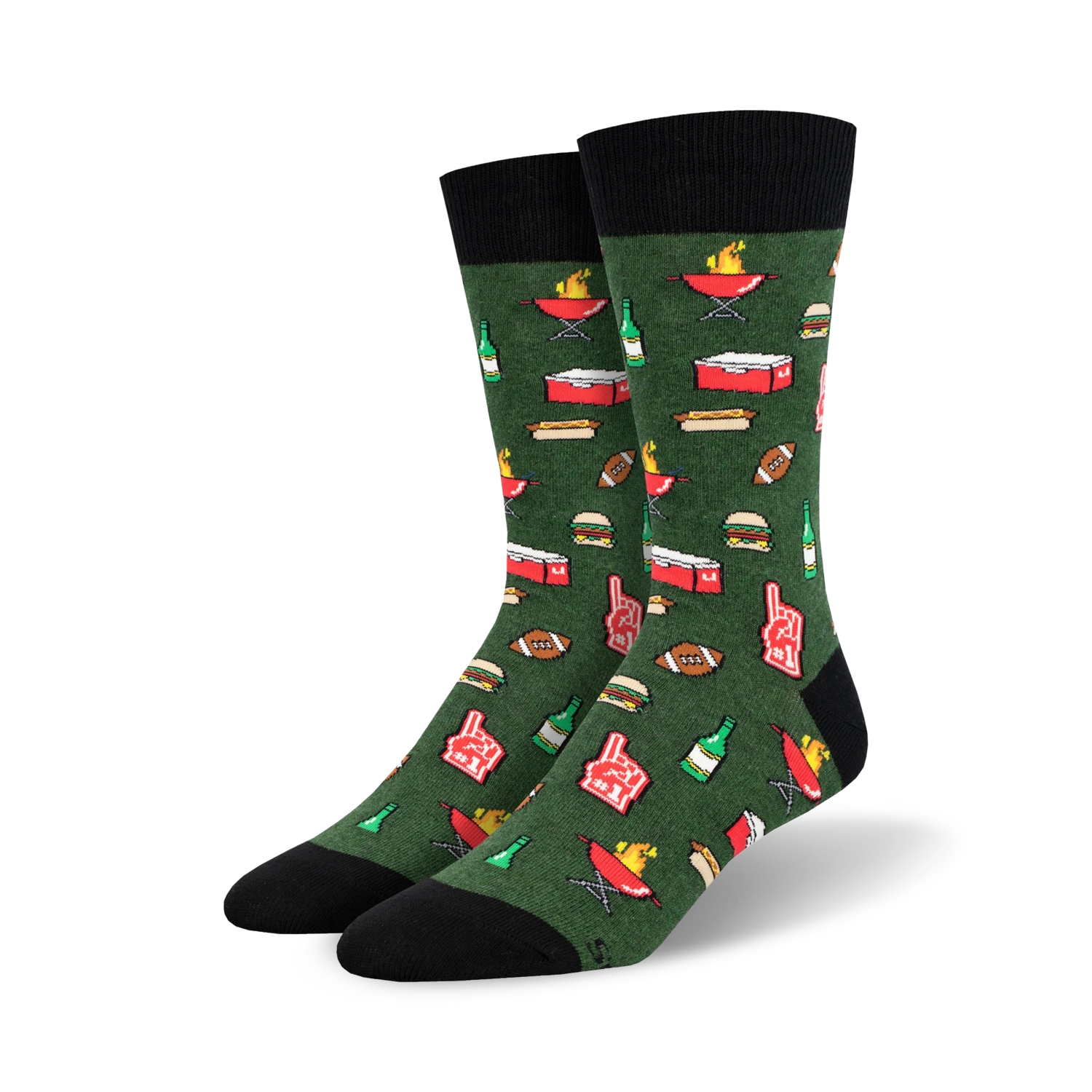 Tailgaters Delight socks are the perfect way to show your team spirit and love of all things BBQ. These crew socks feature a festive pattern of footballs, beer bottles, foam fingers, barbecue grills, hamburgers, and hot dogs. Whether you’re hitting the stadium or just firing up the grill in your backyard, these socks will keep your feet feeling and looking cool all day long. And remember, regardless of how your team does, you can always count on having a good time at a tailgate party!
