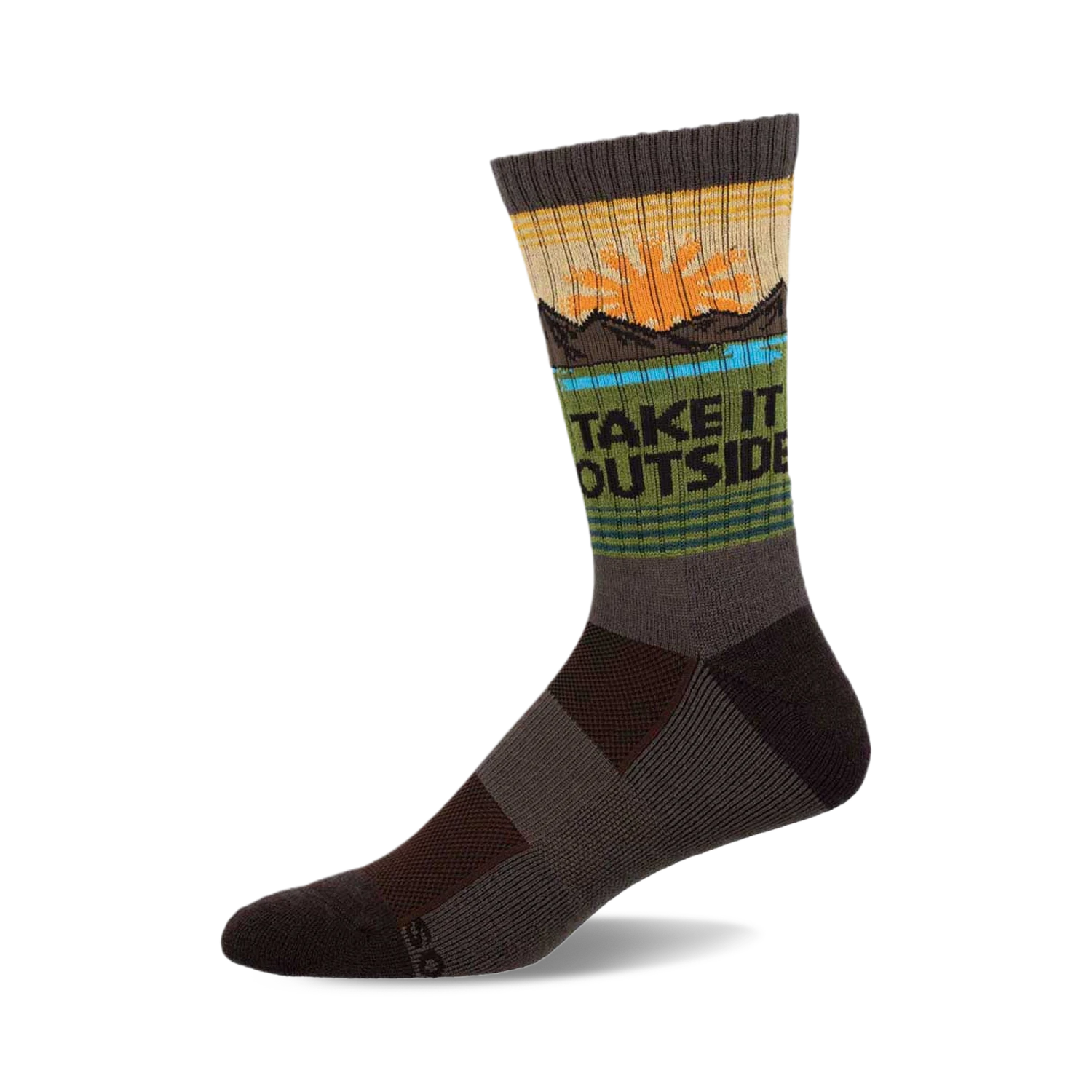 Ah, the great outdoorsthe ultimate playground for adventure seekers and nature lovers alike. Our COMPASS collection’s Merino wool socks invite you to ‘Take it outside’ with a design that captures the essence of a setting sun over a tranquil blue lake, framed by majestic mountains. These socks promise not just style but the kind of comfort that makes every hike feel like a walk in the park. So, lace up those boots and let Mother Nature know you’re ready for whatever she throws your way.