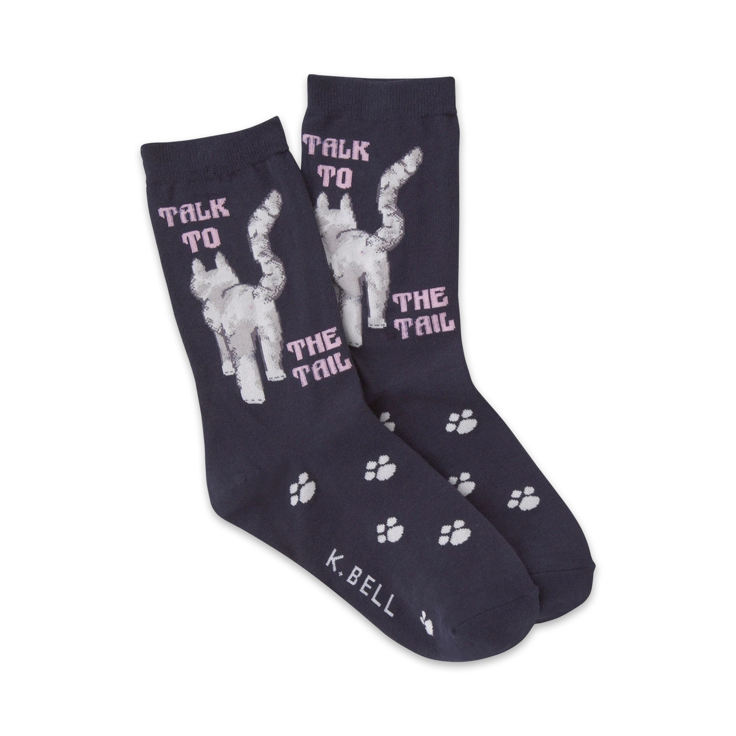 Sometimes people are just too much to deal with. Thank goodness for cats! These funny cat print black socks feature the back-end of a cat walking away with the phrase “Talk To The Tail”. These awesome socks are purrfect for days you just want to be left alone. Leave us meow’t of it!