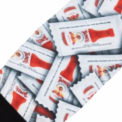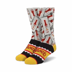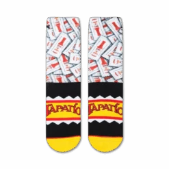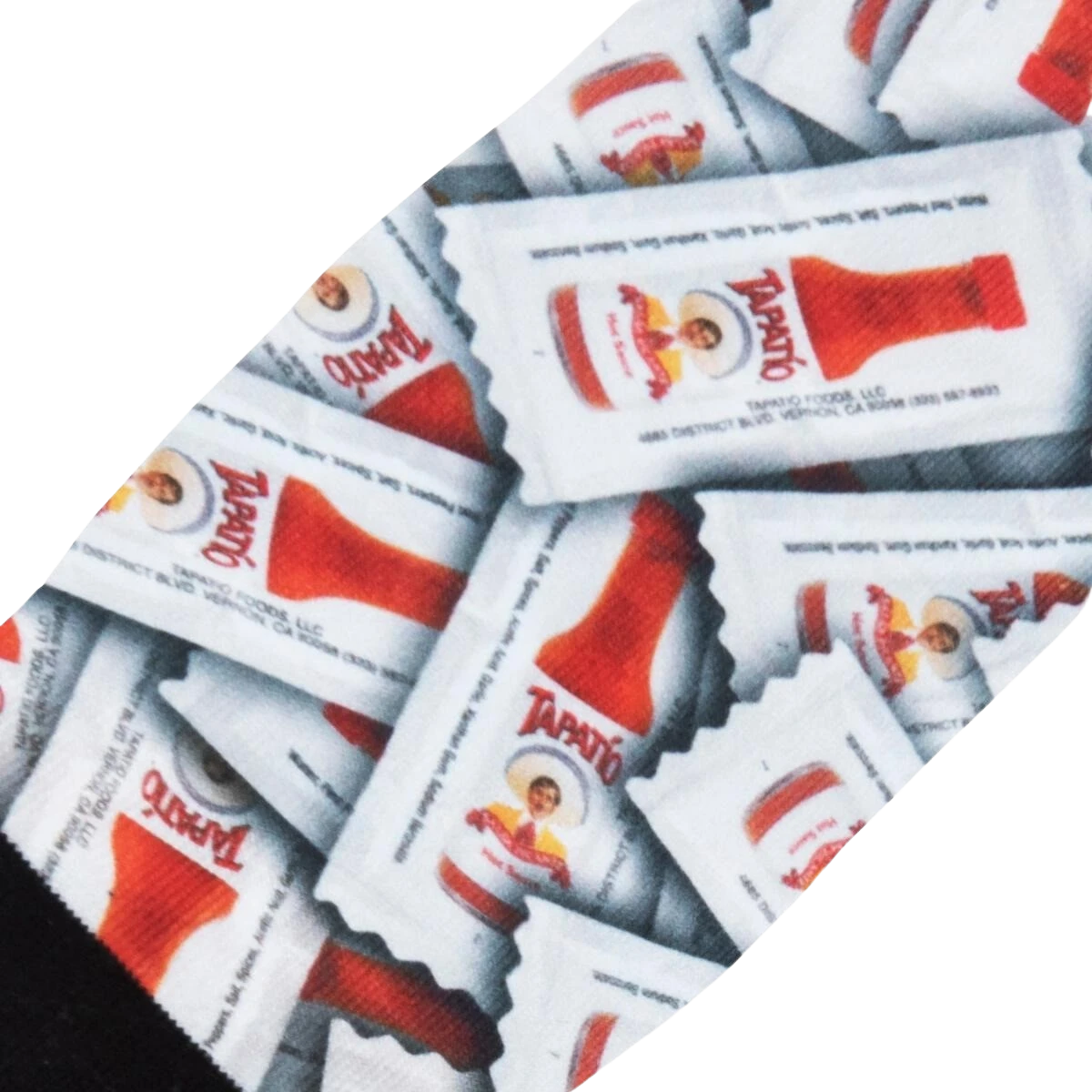 Feast your eyes on these Tapatio To Go socks! If you love the spicy kick of Tapatio, the most-loved hot sauce brand in all of Mexico, you will love rocking these red and yellow Tapatio-covered socks. These socks are sure to spice up your outfit, and put a smile on your face every time you look down at your feet.