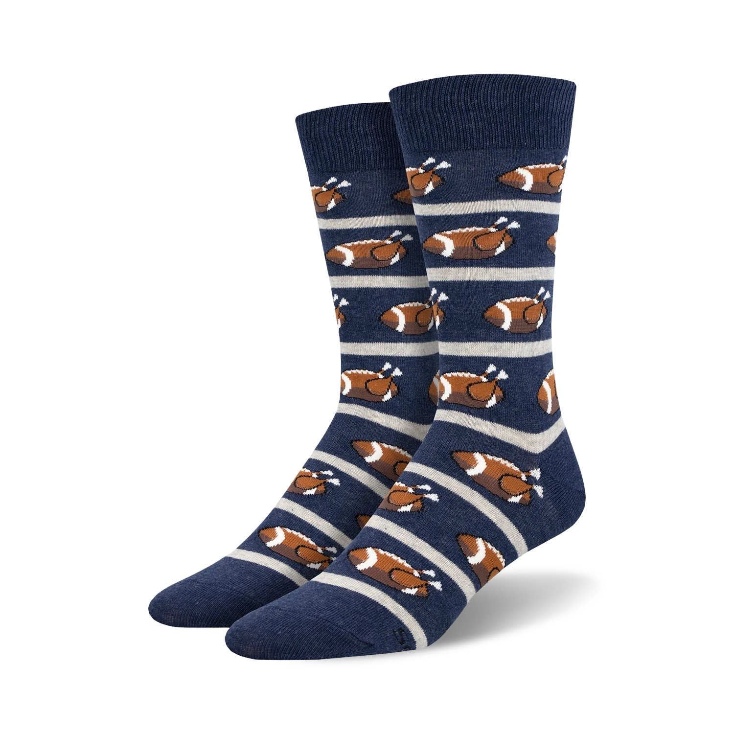 🈠Thanksgiving feast or football frenzy? Why not both? 🦃 Stay warm and stylish on Turkey Day with our “Thanksgiving Football” crew socks for men. These socks feature lively patterns of brown footballs and turkeys in bright orange and blue that will add a dash of fun to your holiday wardrobe. Perfect for when you want to kick back and relax or cheer on your favorite team!