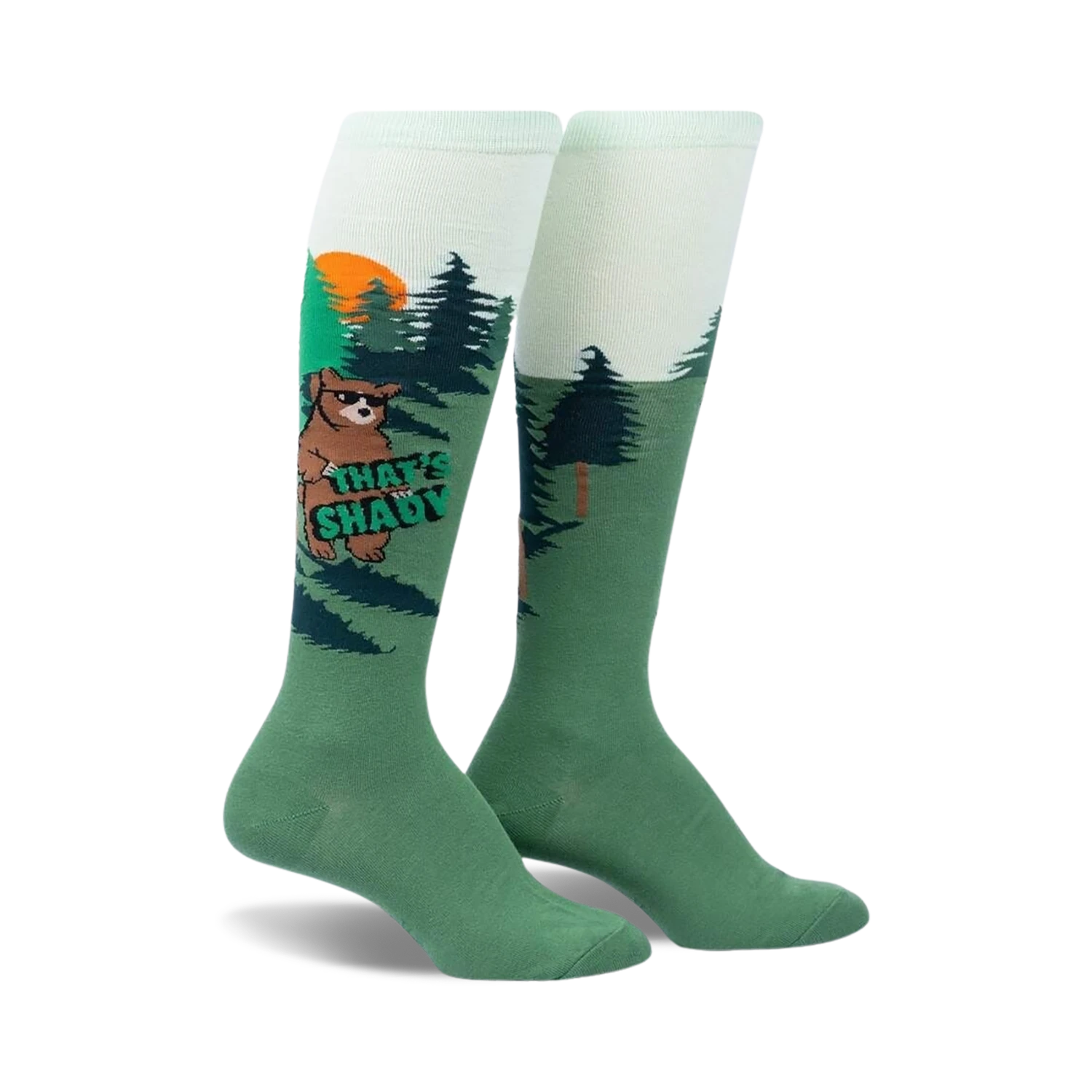 That’s Shady knee-high socks are the coolest shades in the forest. Forget those grizzly old bear puns, these shades sporting bears are the epitome of chill. Snuggle up with a good book and some cocoa or strut your stuff at the next camping trip. No matter how you wear them, these socks won’t bear you wrong!