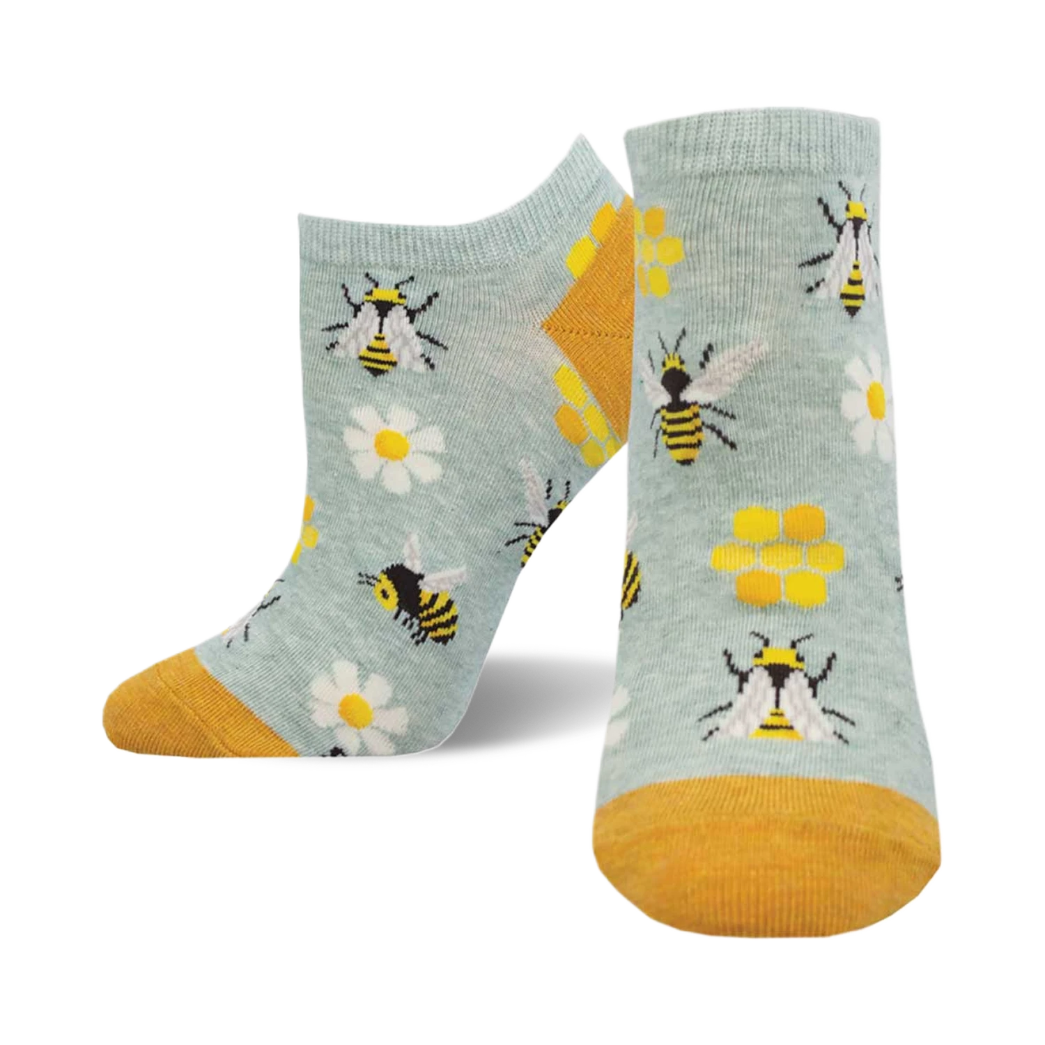 Unleash your inner queen bee with our “To Bee Or Not To Bee” socks! Buzz around town with this playful patterning of black and yellow bees, charming beehives, and dainty white flowers dancing on a serene blue backdrop. Perfect for garden parties, cozy brunches, or just adding a pop of fun to your daily hustle. Who says you can’t have your style and comfort too? Slip these on for a sweet escape onto the wild side of footwear!