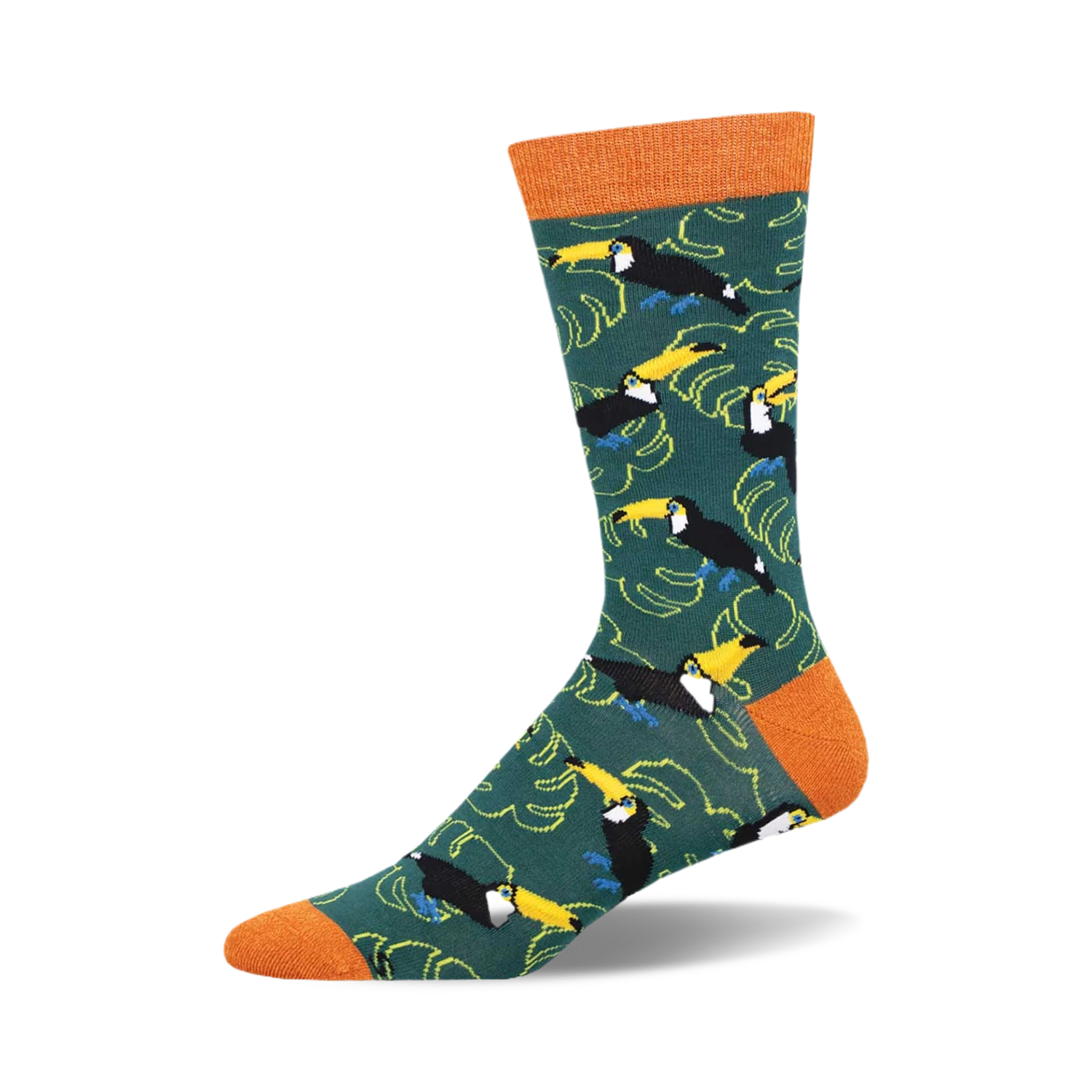 Embrace the toucan-do spirit with our latest addition to the sock drawer! Crafted from sumptuously soft bamboo fabric, these socks aren’t just a treat for your feetthey’re a retreat! Flaunting a lush green canvas punctuated by vibrant orange at the toes, heel, and cuff, each pair is a sartorial escape. Adorned with playful toucans and whimsical foliage, they whisper a promise of exotic adventures. Who needs a vacation when every step is a journey into the jungle? Keep your soles cool and your style sizzling with these fabulously feathered friends.