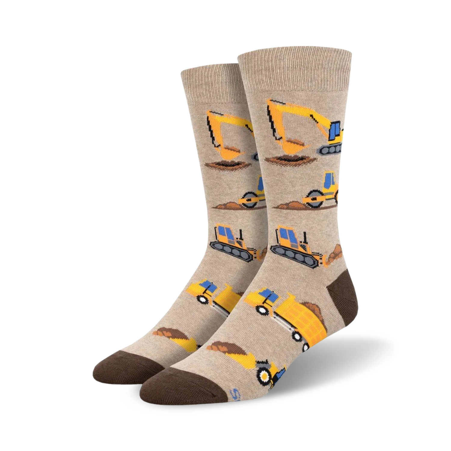 Calling all bulldozer drivers, dump truck enthusiasts, and steamroller superfans! Get ready to embark on a construction adventure with our Under Construction socks. Featuring a vibrant pattern of yellow bulldozers, dump trucks, and steamrollers, these beige crew socks for men are like wearable construction zones. Whether you’re a hard-working man on the job site or just someone who loves big machines, these socks will put a smile on your face and make you feel like you’re part of the crew. Fun fact: Steamrollers were invented in the 1870s and initially used steam engines for power. So, put on a pair of Under Construction socks and let your feet do the talking!