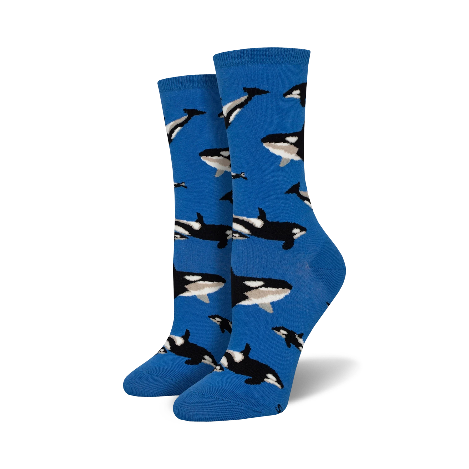 Whale Hello There! Splash into the deep blue with these fin-tastic orca socks. With their majestic black and white design against a vibrant blue background, these socks are sure to make a splash wherever you go. Super soft and comfy, these whale-come additions to your sock drawer will have you feeling like you’re swimming with the orcas!