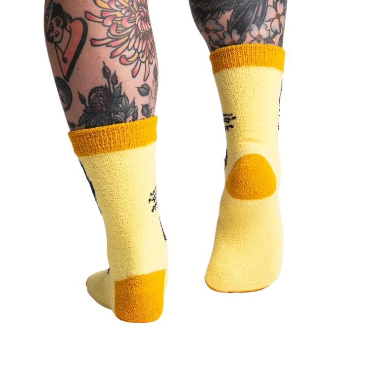When life gives you butterflies, wear them on your feet! These sunny yellow slipper socks, adorned with delicate butterfly motifs, make every relaxation moment a touch more whimsical and cozy.