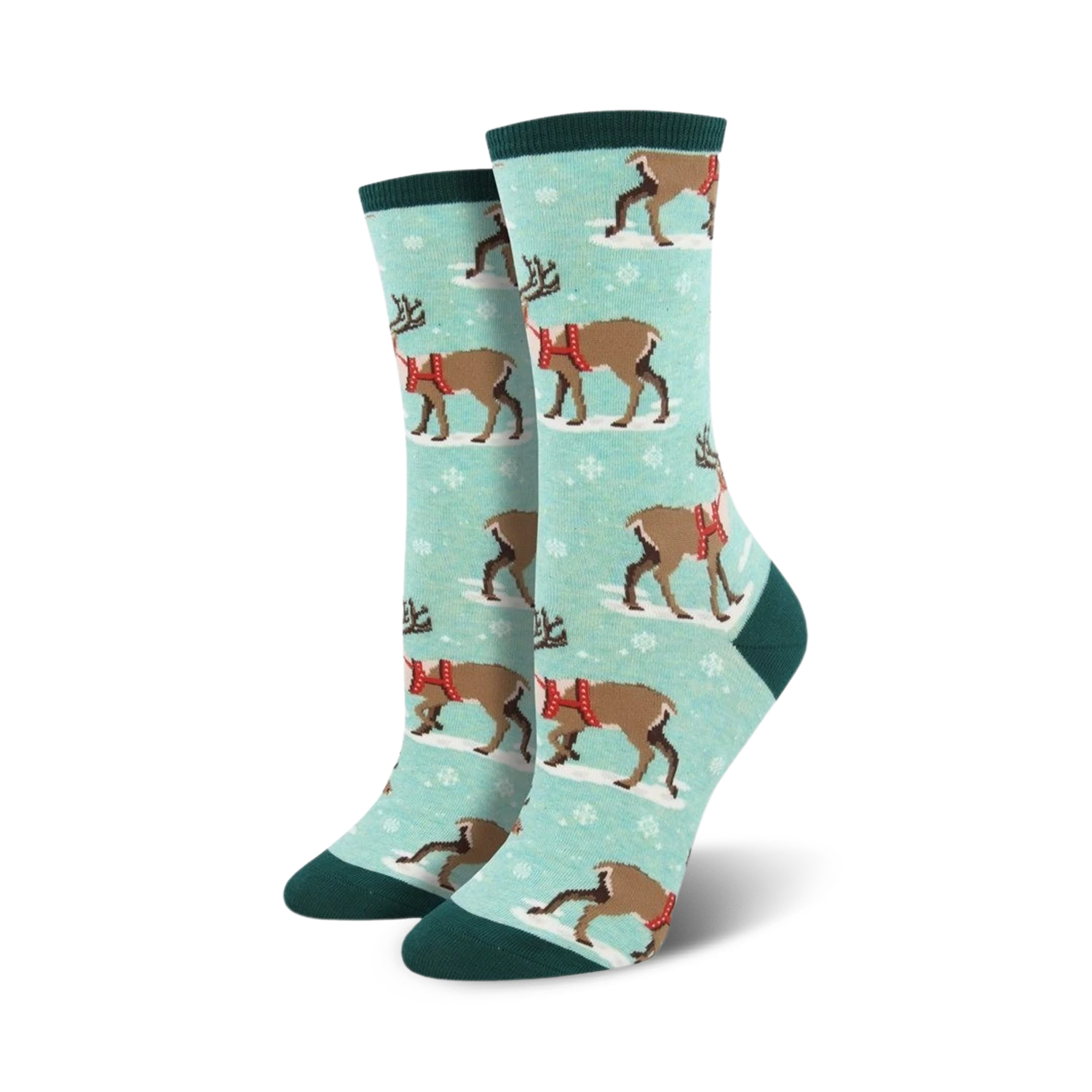 Dashing through the snow, they’ll look festive and bright, These reindeer socks will put you in the holiday spirit, day or night! With reindeer and snowflakes dancing across a blue backdrop, They’ll keep your feet merry and joyful, no matter where you stop. “Red-nosed reindeer,” you’ll hear them cry, As you prance around the Christmas tree, oh so high!