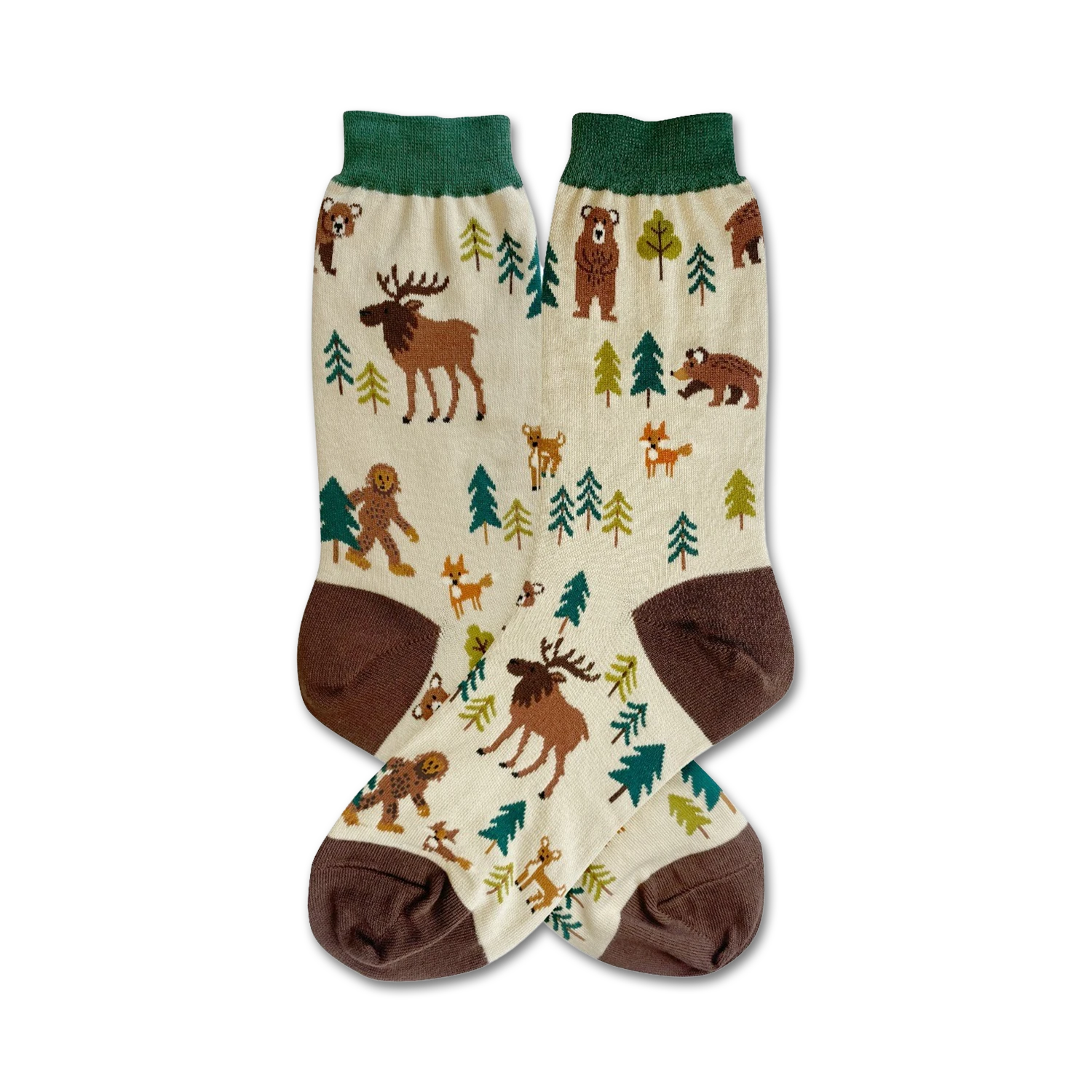Woodland charm in every stride! Our Woodland Creatures socks feature friendly forest friends on a cream backdrop. With cozy brown toes, heels, and green cuffs, these socks will accompany you on your next adventure.