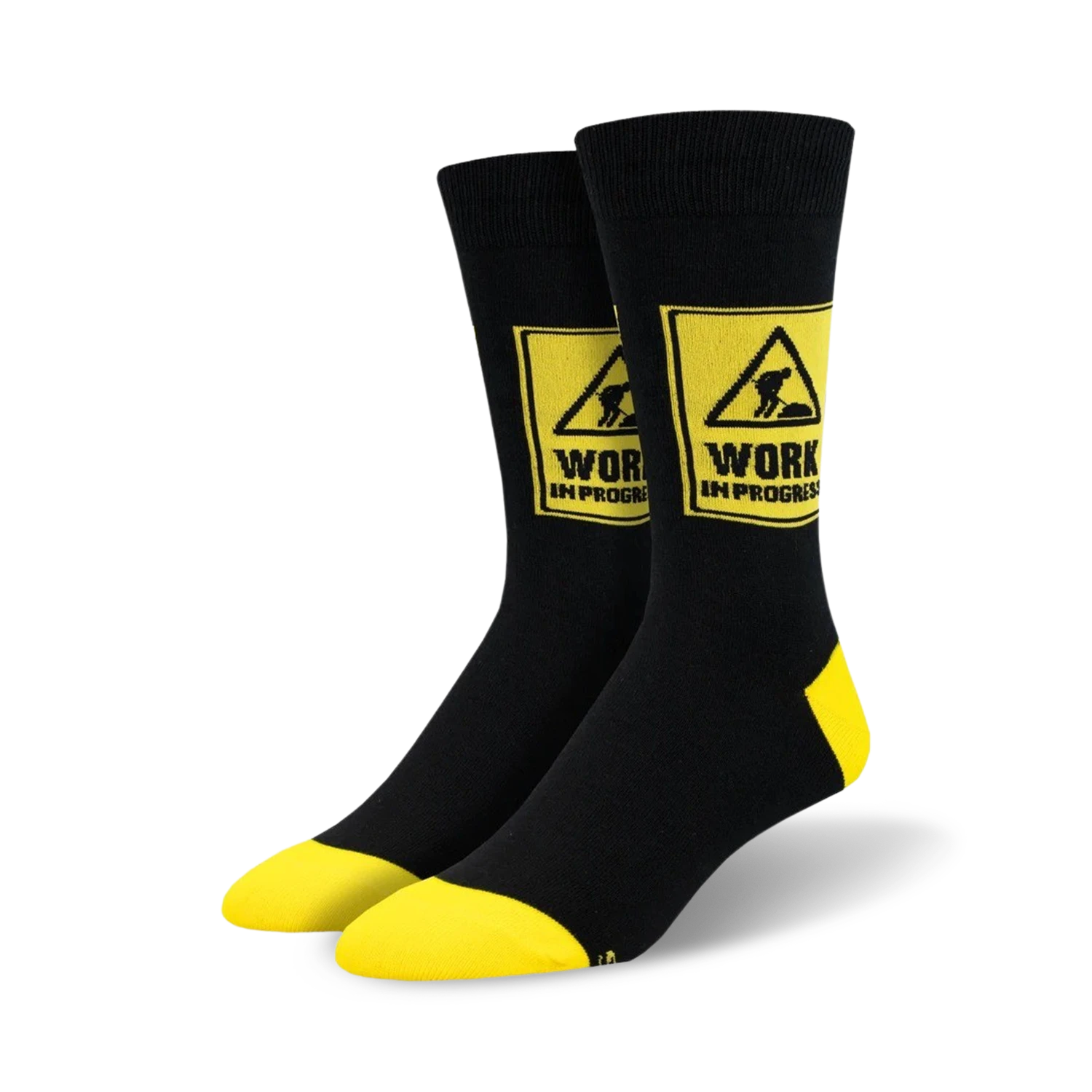 Hold onto your loafers, folks! Strut your stuff with our “Work in Progress” socks, where the soles are sunny yellow and the print features attention-grabbing caution signs that read “Work in Progress,” reminding you that you’re a masterpiece in the making. Flaunt these socks to let the world know that you’re a project that’s constantly improving and that every step you take brings you closer to greatness.