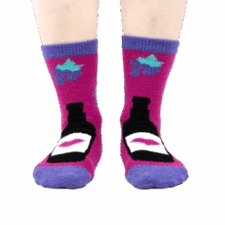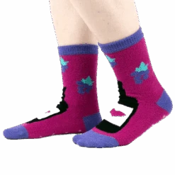 When life gives you grapes, make every step a celebration. Our wine-themed slipper socks are here to ensure your feet are as joyous as a glass of your favorite vintage. These socks, adorned with a playful black wine bottle design and charming purple flowers, are not just about aestheticsthey’re a toast to comfort and style. With a touch of teal accents and a snug purple trim, they’re ready to bring a happy hour vibe to your cozy moments all year round.