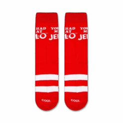 Looking for a way to sprinkle some fun into your everyday attire? Slip into the delightfully charming “You Had Me At Jell-O” socks, and let the laughs follow wherever you tread. These crew-length socks are a blast of bright red with snazzy white stripes and whimsical wording that can’t help but conjure smiles. Perfect for lounging or as a quirky conversation starter at parties, these socks are a must-have for those who love to combine comfort with a touch of playful flair. Why wear boring socks when you can make a jelly-good statement?