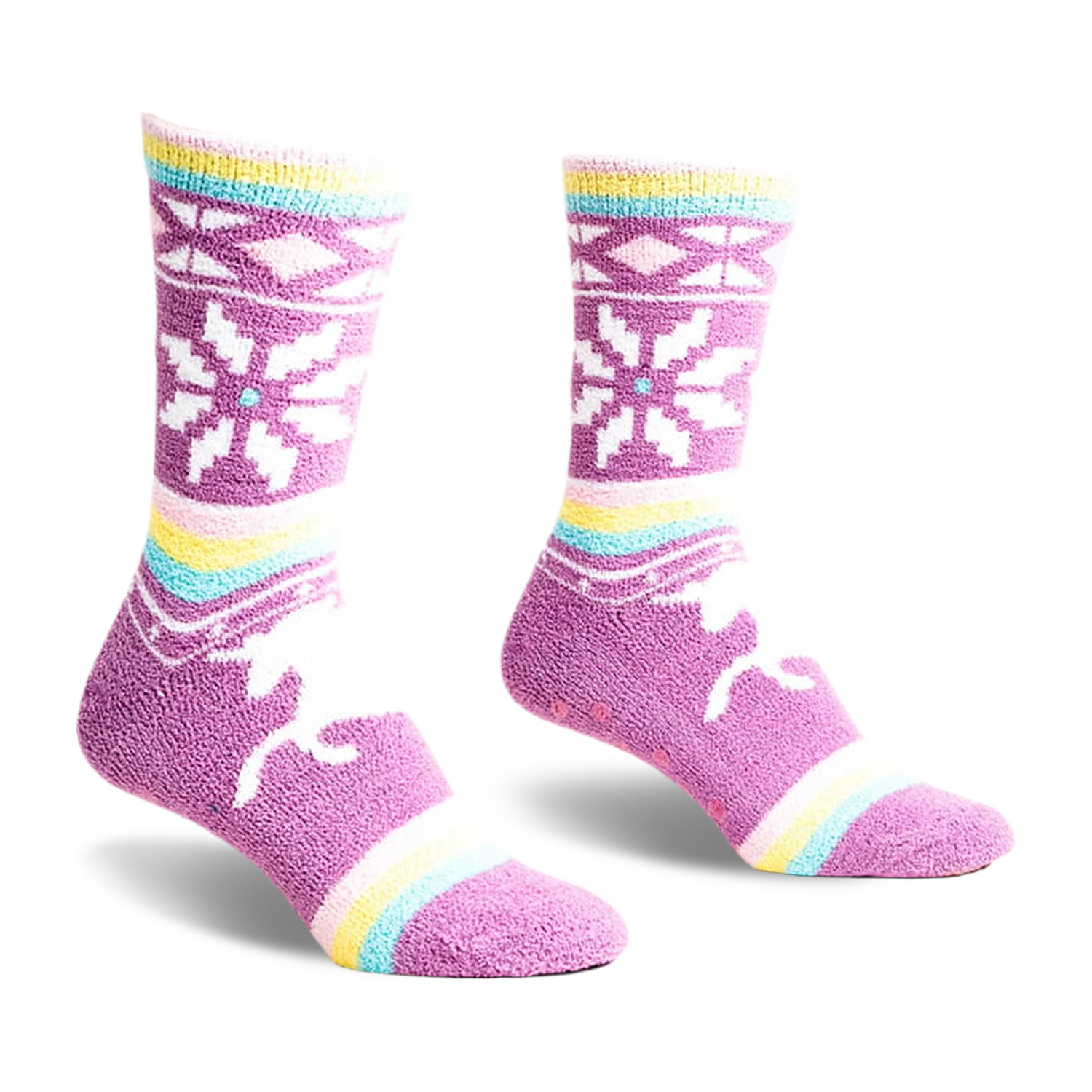 Unicorns might just be the ultimate ambassadors of whimsy, and now, theyve found their way onto your feet. With a sprinkle of magic and a dash of fairytale charm, these unicorn-themed slipper socks are ready to wrap your toes in a world of colorful imagination. The delightful snowflake patterns and playful stripes are your friendly reminder that a little magic is always within reach.